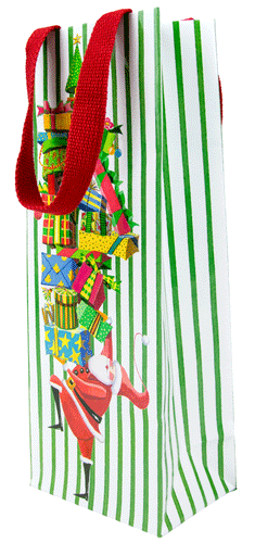 Santa With Gift Tower Bottle Bag 5 X 3 1/2 X 13