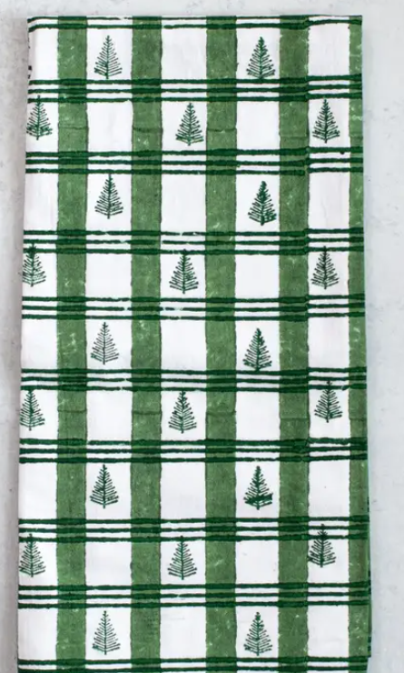 27" x 27" 100% Flour sack Cotton with convenient loop for easy hanging Hand block printed by survivors of modern day slavery. Tea Towel - Plaid Trees,Sage & Evergreen Nothing brightens up a kitchen or guest bathroom more than Mended's vibrant tea towels. Each tea towel is 100% floursack cotton and hand block printed to be a stunning decor item or a work horse to help you clean! Mix and match with any of our other Mended tea towel patterns to create your very own kitchen or bathroom style or create the most stunning gift for family and friends.