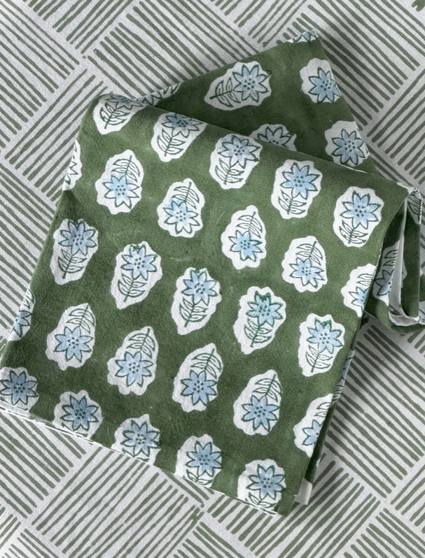 Nothing brightens up a kitchen or bath then Mended's colorful tea towels. Each tea towel is 100% cotton, handmade, and block printed to be a stunning decor item or a work horse to help you clean up! Mix and match with any of our other Mended tea towel patterns to create your very own kitchen style or create the most stunning gift for family and friends. We believe “Restoration begin at your Table”. 27" x 27" 100% Floursack Cotton with convenient loop for easy hanging Hand block printed by survivors of modern-day slavery