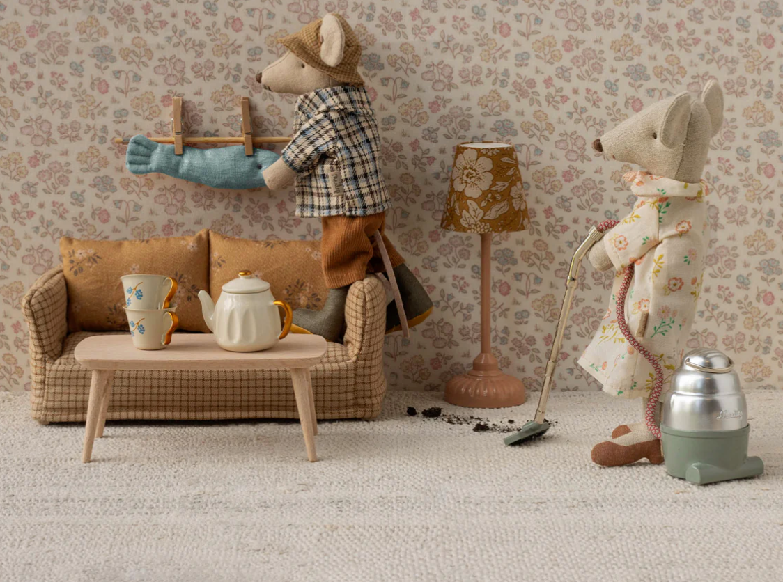 All families needs a soft couch to rest in. The mice family can all sit tight in this and have a cosy time, it fits perfectly to the living room in the Mouse hole Farmhouse. Add the wooden coffee table to fulfil your home decoration.