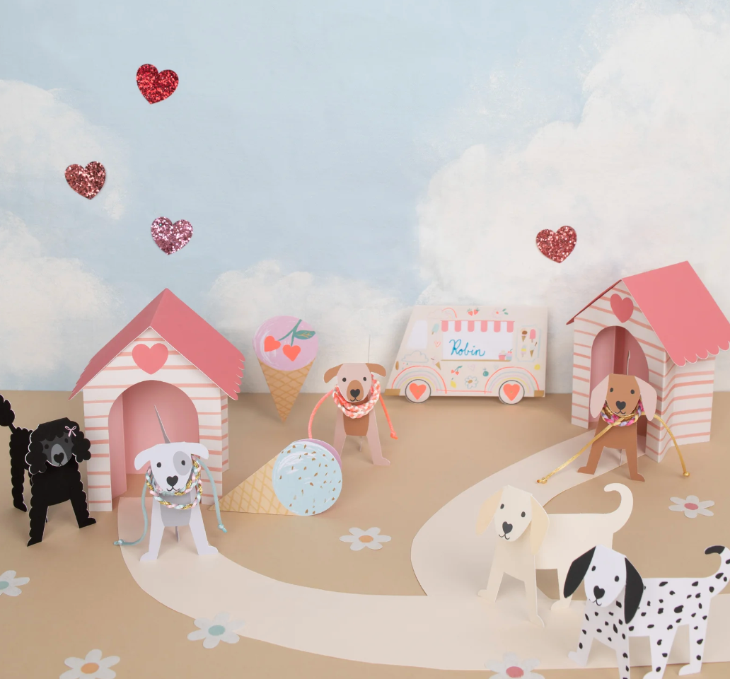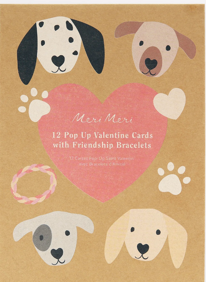 Is it a card, is it a decoration, is it a gift? It's all three! Share some puppy love with our beautifully designed and crafted cards, featuring an adorable pop up 3D dog and dog house, and a colorful friendship bracelet. A interactive gift to treasure long after Valentine's Day is over, perfect for classmates, friends and family.